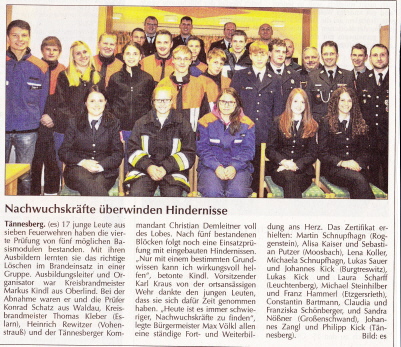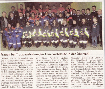 Aus unserer Wehr nahmen Constantin Bartmann, Christina, Claudia, Corinna und Franziska Schönberger, Christine Haneder und Sandra Nößner teil. |