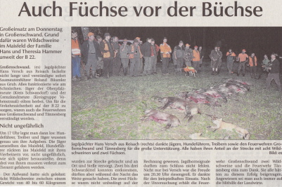 Treibjagt war erfolgreich - Feuerwehr sicherte die B22 ab |