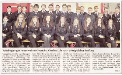 Aus unserer Wehr nahmen Constantin Bartmann, Christina, Claudia, Corinna und Franziska Schönberger, Christine Haneder und Sandra Nößner teil. |