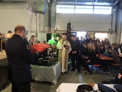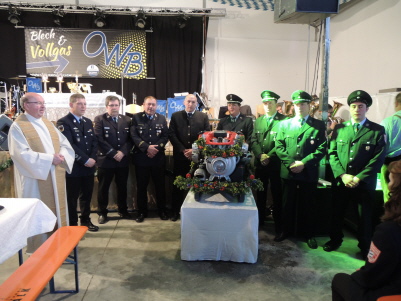 Die alte Pumpe war Baujahr 1966 und ist in die Jahre gekommen. Mit dem Beschluss des Gemeinderats 2014 stand dem Kauf einer neuen Pumpe nichts mehr im Weg. Es wurde bei der Firma Ludwig eine Pumpe des Modells Fox 3 des Herstellers Rosenbauer gekauft. Nach dem Gottesdienst fanden die Ansprachen der anwesenden Ehrengäste statt.